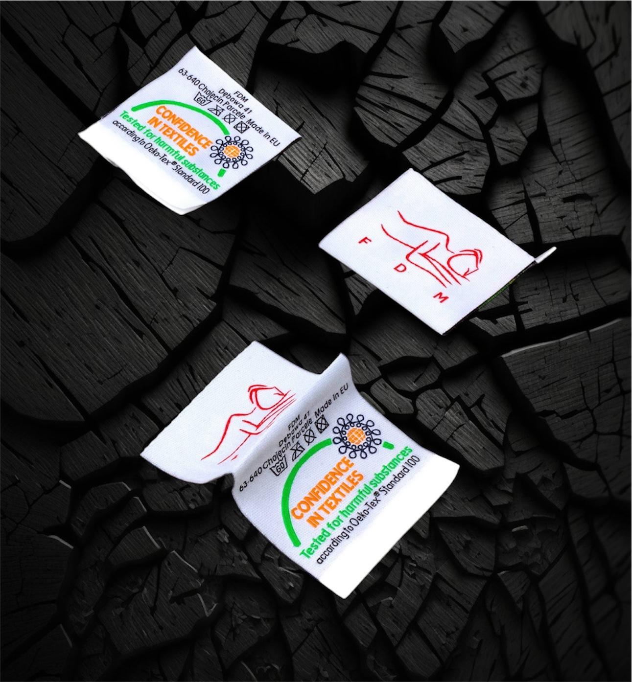Tekstil etiketleri, giysiler ve diğer tekstil ürünlerinde kullanılan, ürün bilgilerini, marka logosunu, bakım talimatlarını ve malzeme içeriklerini belirten etiketlerdir. Bu etiketler, genellikle kumaş, naylon veya saten gibi malzemelerden üretilir ve ürünlerin kimliğini ve kalitesini vurgular.